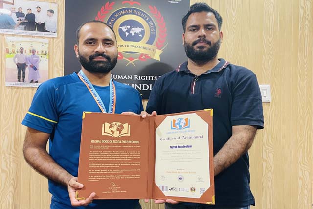 Dr H R Rehman Director (GBER) presented Global Book of Excellence Records to Shri Tayyab Jeelani first Tribal Student from Reasi Jammu Kashmir who bagged Gold Medal in Urdu department university of Jammu.